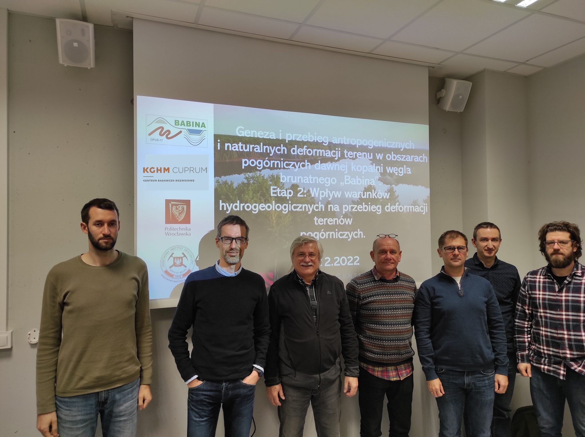 W grudniu 2022 roku odbyło się pierwsze spotkanie partnerów projektu pn. Geneza i przebieg antropogenicznych i naturalnych deformacji terenu w obszarach pogórniczych dawnej kopalni węgla brunatnego „Babina”. Etap 2: Wpływ warunków hydrogeologicznych na przebieg deformacji terenów pogórniczych, realizowanego w ramach Konkursu OPUS 22 Narodowego Centrum Nauki w okresie grudzień 2022 r. – listopad 2025 r.
