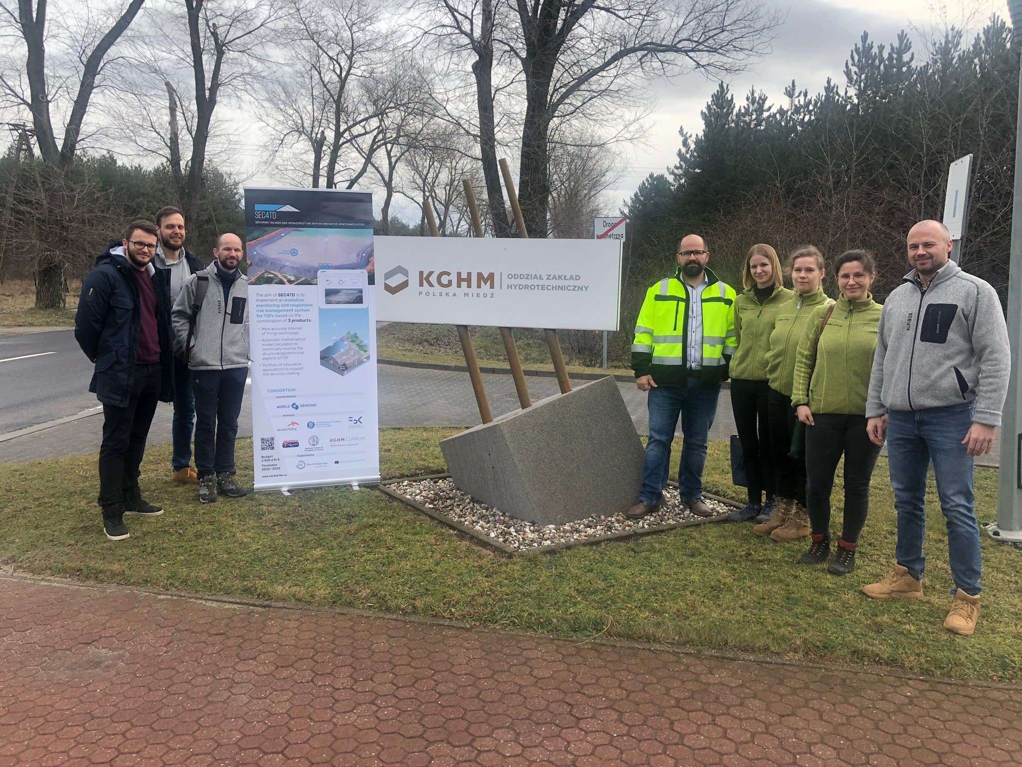 This week polish partners of Sec4TD consortium together with Hydrotechnical unit of KGHM Polska Miedź S.A. have performed a local vision at Gilów TSF. Sec4TD project (Securing Tailings Dam Infrastructure with an Innovative Monitoring System) aims to develop innovative IoT platform based on artificial intelligence for monitoring of tailings storage infrastructure. Currently the activity of the consortium is focused on the definition of holistic architecture of developed technology, as well as its adjustment for selected pilot objects. The goal of the local vision was to identify the possibility of development of real-time IoT-based monitoring system and intelligent computational methods for the assessment of current dam condition as well as its prediction in the future.