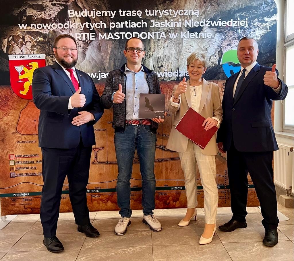 W piątek, 10 marca br. przedstawiciele KGHM CUPRUM w osobach Pana Radosława Piluta – Prezesa Zarządu i Macieja Madziarza – Kierownika Zakładu Górnictwa, wzięli udział w uroczystym spotkaniu z okazji podpisania umowy na realizację inwestycji pn. „Udostępnienie nowych partii Jaskini Niedźwiedziej w Kletnie (Partie Mastodonta) dla ruchu turystycznego” zawartej pomiędzy Strońskim Parkiem Aktywności „Jaskinia Niedźwiedzia” Sp. z o.o., którą reprezentowała Pani Prezes Renata Nowak a wykonawcą – firmą Skoczeń, reprezentowaną przez Pana Marcina Skocznia.