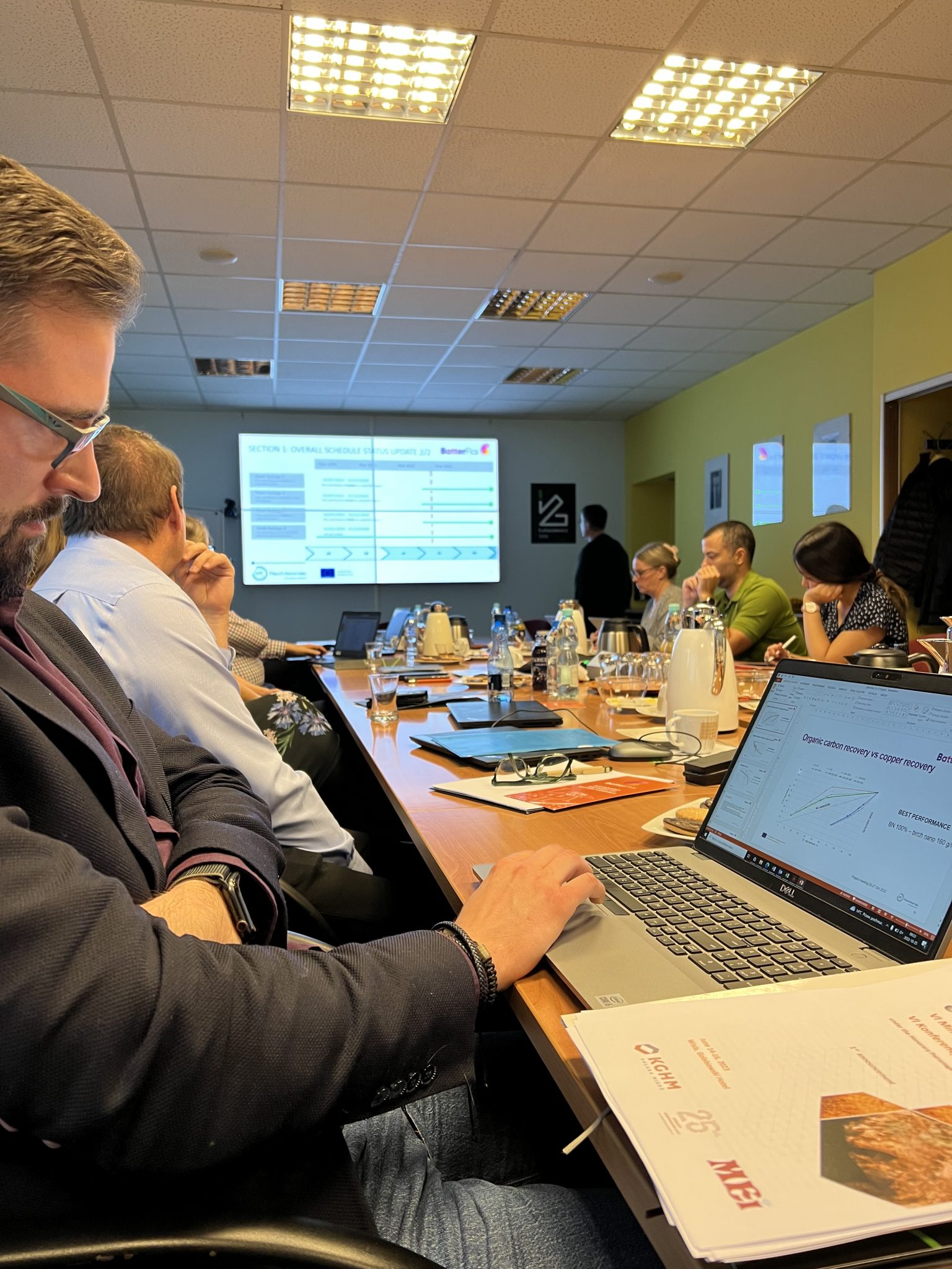 Dwudniowe spotkanie Partnerów projektu obejmowało obrady oraz sesję terenową. Pierwszego dnia, w Gliwicach, zaprezentowano dotychczasowe osiągnięcia Partnerów w ramach badań laboratoryjnych, obejmujących flotację z wykorzystaniem odczynników na bazie nanocząsteczek ligniny. Omówiono także założenia do testów pilotowych na rudach: polskiej (KGHM Polska Miedź S.A.), szwedzkiej (Boliden AB) i greckich (Hellas Gold S.A.), które będą realizowane w ramach przyszłych pakietów roboczych. W kolejnym dniu zorganizowano wizytę w Oddziale Zakłady Wzbogacania Rud rejon Polkowice, gdzie Partnerzy projektu mogli zapoznać się z rozwiązaniami technologicznymi stosowanymi w Zakładzie.